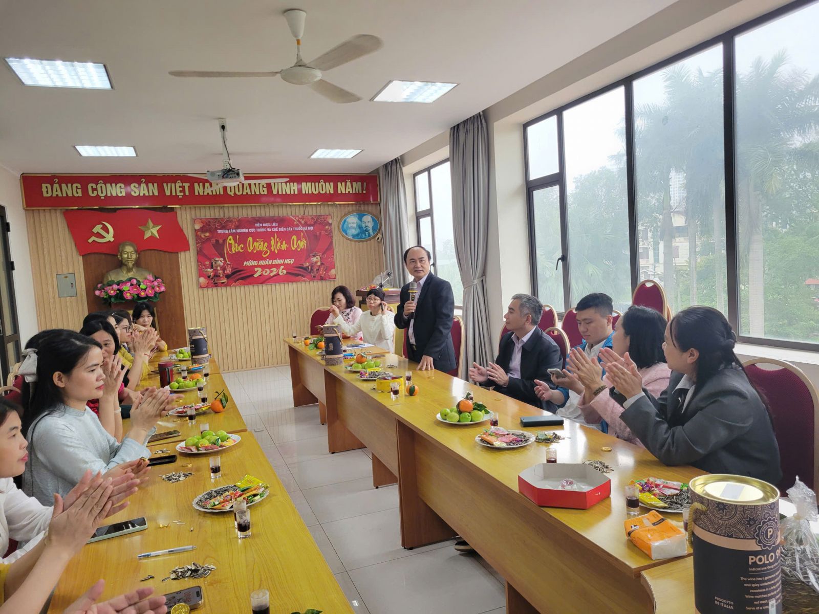 Về phía Trung tâm, đại diện Ban Giám đốc Trung Tâm TS. NGuyễn Văn Khiêm cũng đã chúc toàn thể cán bộ Trung tâm thực hiện thắng lợi mọi nhiệm vụ trong năm 2026; Phát huy những thành tích đã đạt được trong năm 2025, đồng chí mong muốn và tin tưởng rằng, toàn thể CBCCVC trong Trung Tâm sẽ tiếp tục phát huy đoàn kết, siết chặt kỷ cương, kỷ luật, tăng cường trách nhiệm, nỗ lực đổi mới, chung sức, chung lòng, phấn đấu đưa Trung Tâm phát triển lên tầm cao mới. Những lời chúc tốt đẹp và đầy ý nghĩa của Lãnh đạo Viện và của Ban Giám đốc Trung tâm chính là động lực để toàn thể CBCCVC Trung Tâm cùng nhau đoàn kết, phấn đấu đạt được những thành tích tốt nhất trong năm 2026, tiếp tục xây dựng Trung Tâm ngày một lớn mạnh. Đây cũng là dịp để toàn thể CBVC trong Trung Tâm có những lời chúc tốt đẹp nhất dành cho nhau trong năm Bính Ngọ này với mong muốn và hy vọng về một mùa Xuân, một năm mới tiếp tục gặt hái được nhiều thành công hơn nữa.